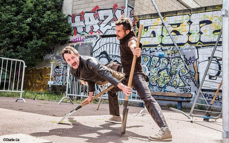 C’est une performance de cirque résolument décalée, où l’absurde et le périlleux se mêlent dans une ambiance blues. Armés de pelles, de bêches et de barrières Vauban détournées, les deux artistes transforment le quotidien en un spectacle physique, drôle et poétique.